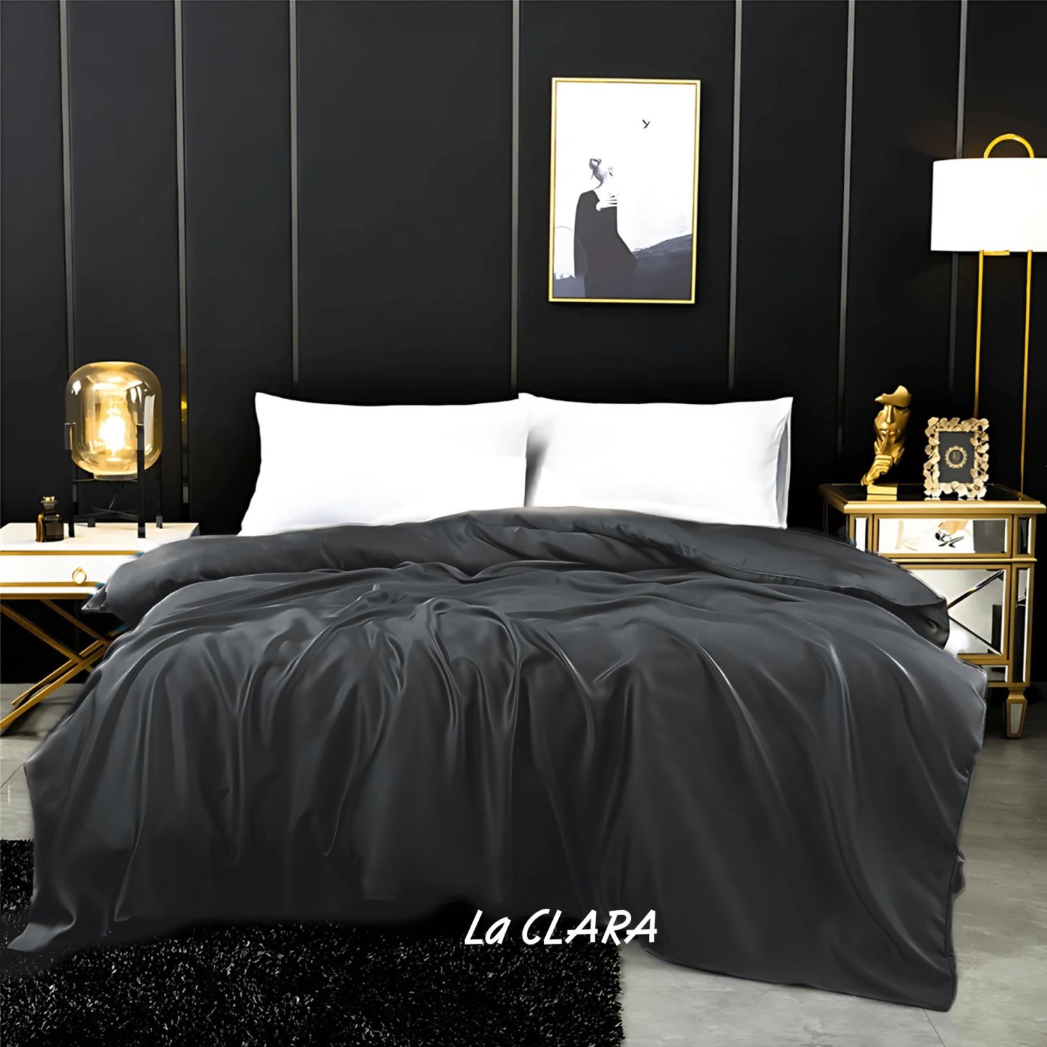Spannbetttuch - Betttuch - Helios - Schwarz - Hochglanz